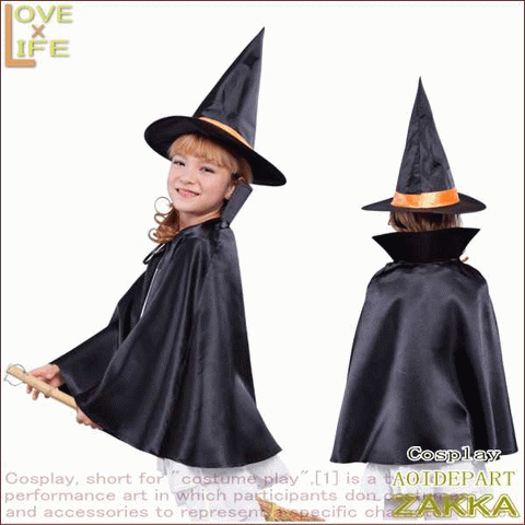 キッズ魔女セット 黒 子供♪魔女帽子とマントのお子様用。ひとつはもっていたい☆AOIデパートのコスプレシリーズ♪【コスプレ】【衣装】【コスチューム】【ハロウィン】【】【大人気】【大大人気】【5 】