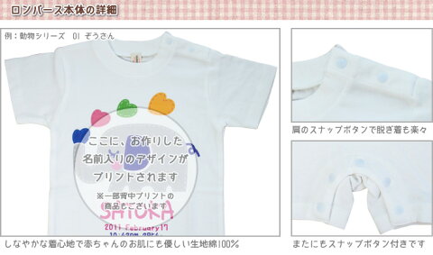 >>> メール便についての詳しい説明はこちら <<<オーダーメイドで作る名前入りのロンパースです。